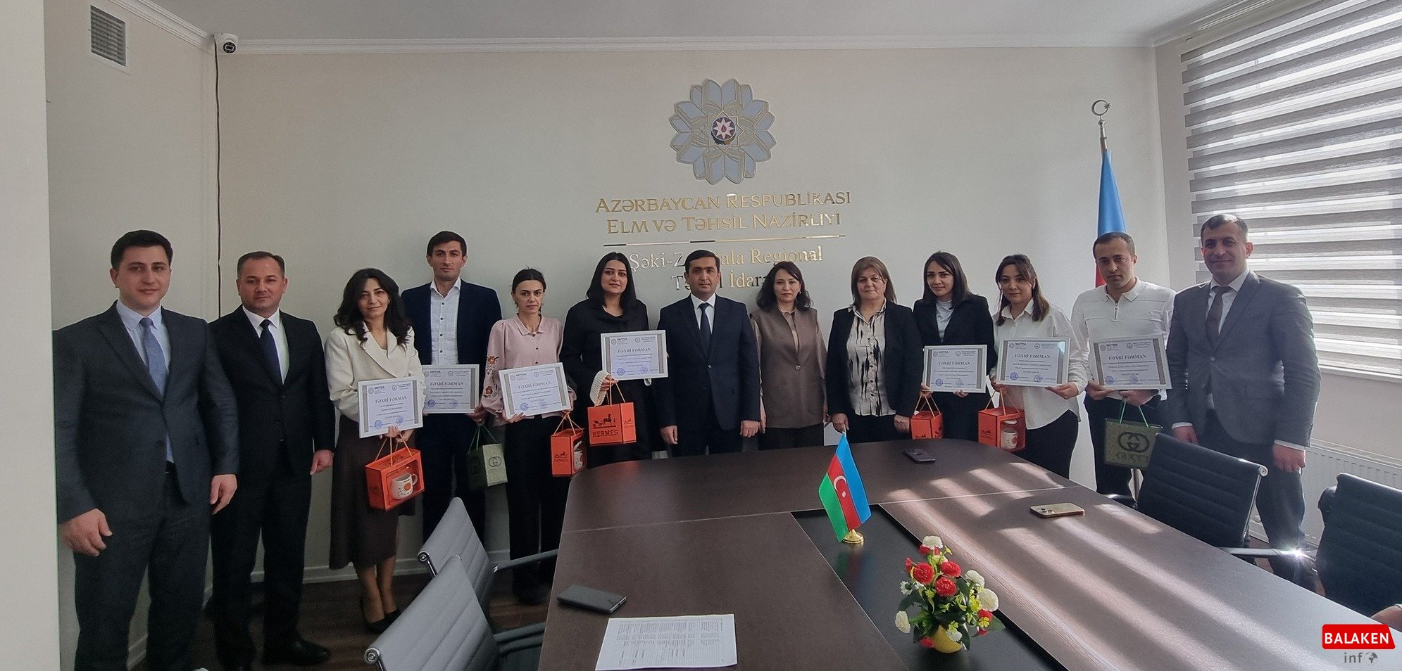 Şəki-Zaqatala Regional Təhsil İdarəsinin gənc əməkdaşları təltif olunub Redaktor Bu gün, 08:49 Cəmiyyət 70 Şəki-Zaqatala Regional Təhsil İdarəsində 2 Fevral – Azərbaycan Gəncləri Günü münasibətilə gənc əməkdaşların təltif olunmasına həsr edilmiş tədbir keçirilib.Tədbirdə çıxış edən İdarə müdiri Günay Mahmudova gənc əməkdaşları əlamətdar gün münasibətilə təbrik edib, onlara gələcək iş fəaliyyətlərində uğurlar arzulayıb.İdarə müdiri qeyd edib ki, Ulu Öndər Heydər Əliyevin əsasını qoyduğu dövlət gənclər siyasəti Prezident cənab İlham Əliyev tərəfindən uğurla davam etdirilir. Prezidentin rəhbərliyi ilə gənclərin hərtərəfli inkişafı, təhsil alması və cəmiyyətin fəal üzvü kimi formalaşması üçün geniş imkanlar yaradılıb. Eyni zamanda bu siyasətin həyata keçirilməsində gənclərin üzərinə mühüm vəzifələr düşdüyü diqqətə çatdırılıb.Daha sonra ETİHİ Şəki Şəhər Komitəsinin sədri Ziyafət Xasiyeva çıxış edərək gənclərin təhsil sistemindəki rolundan bəhs edib, onların peşəkar inkişafına göstərilən diqqət və qayğıya görə təşəkkürünü bildirib. Komitə sədri gənc əməkdaşları daim öz üzərlərində çalışmağa, bilik və bacarıqlarını artırmağa çağırıb.Sonda 2 Fevral –Azərbaycan Gəncləri Günü münasibətilə Şəki-Zaqatala Regional Təhsil İdarəsinin və ETİHİ Şəki şəhər Komitəsinin gənc əməkdaşlarına fəxri fərmanlar və hədiyyələr təqdim olunub. Şahidi olduğunuz hadisələri çəkib bizə göndərin! 7/24 whatsapp 0 1 2 3 4 5 Paylaş